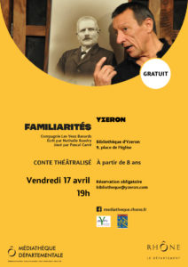 Vendredi 17 avril, à 19h découvrez Familiarités, un conte théâtralisé drôle et tendre sur les photos de famille ! De la compagnie Les Yeux Bavards et joué par le comédien Pascal Carré. Spectacle gratuit à la Bibliothèque, à partir de 8 ans. Réservation obligatoire.