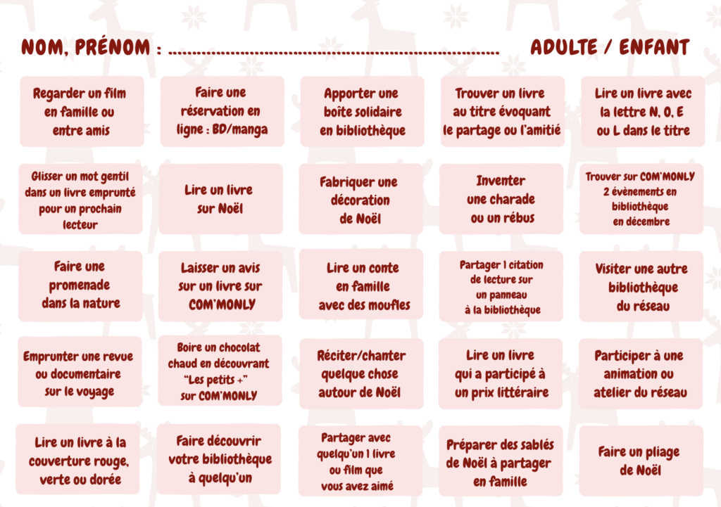 Vous pouvez récupérer la grille à l’accueil de la Bibliothèque ou la télécharger sur le site Commonly.